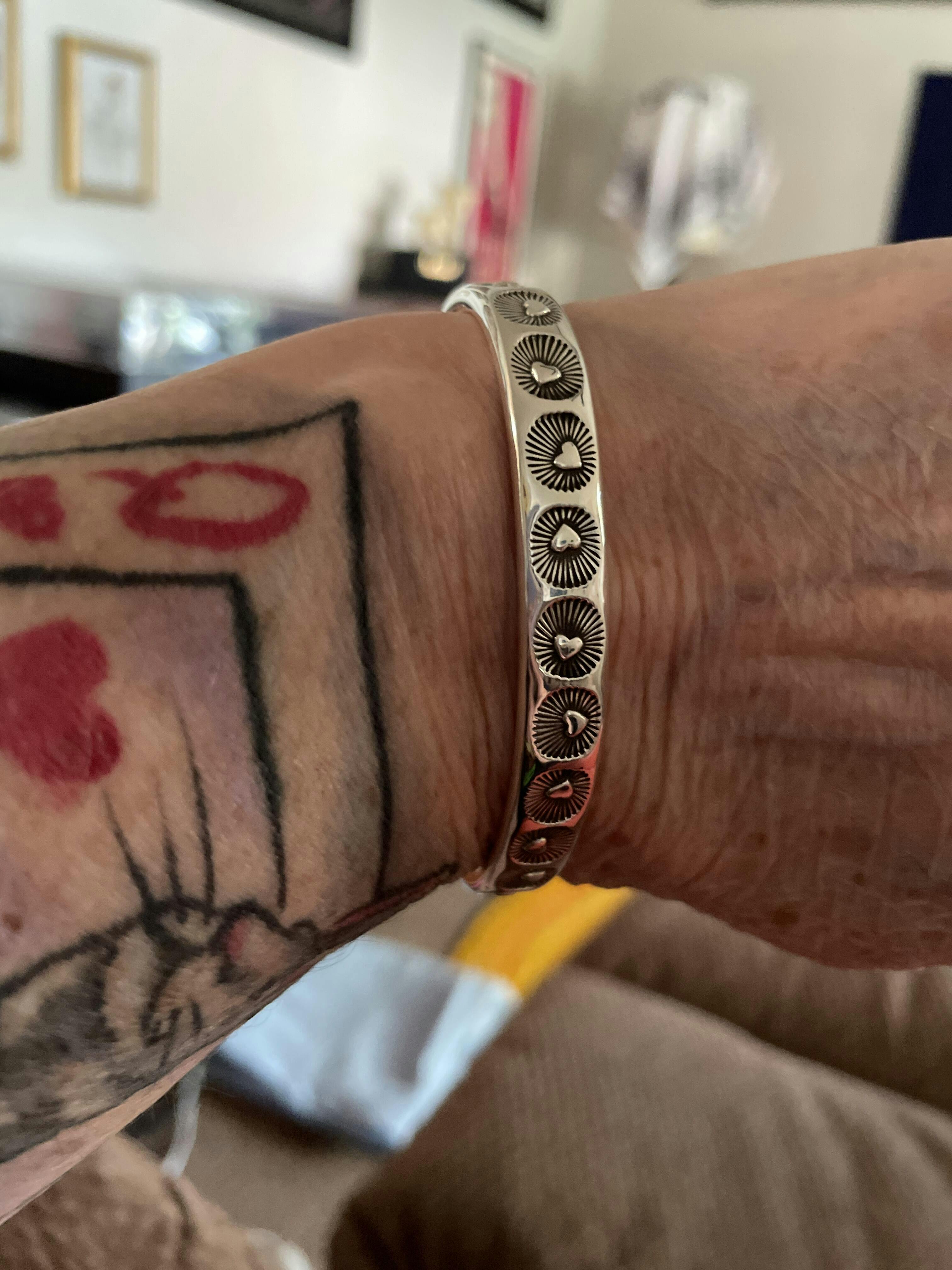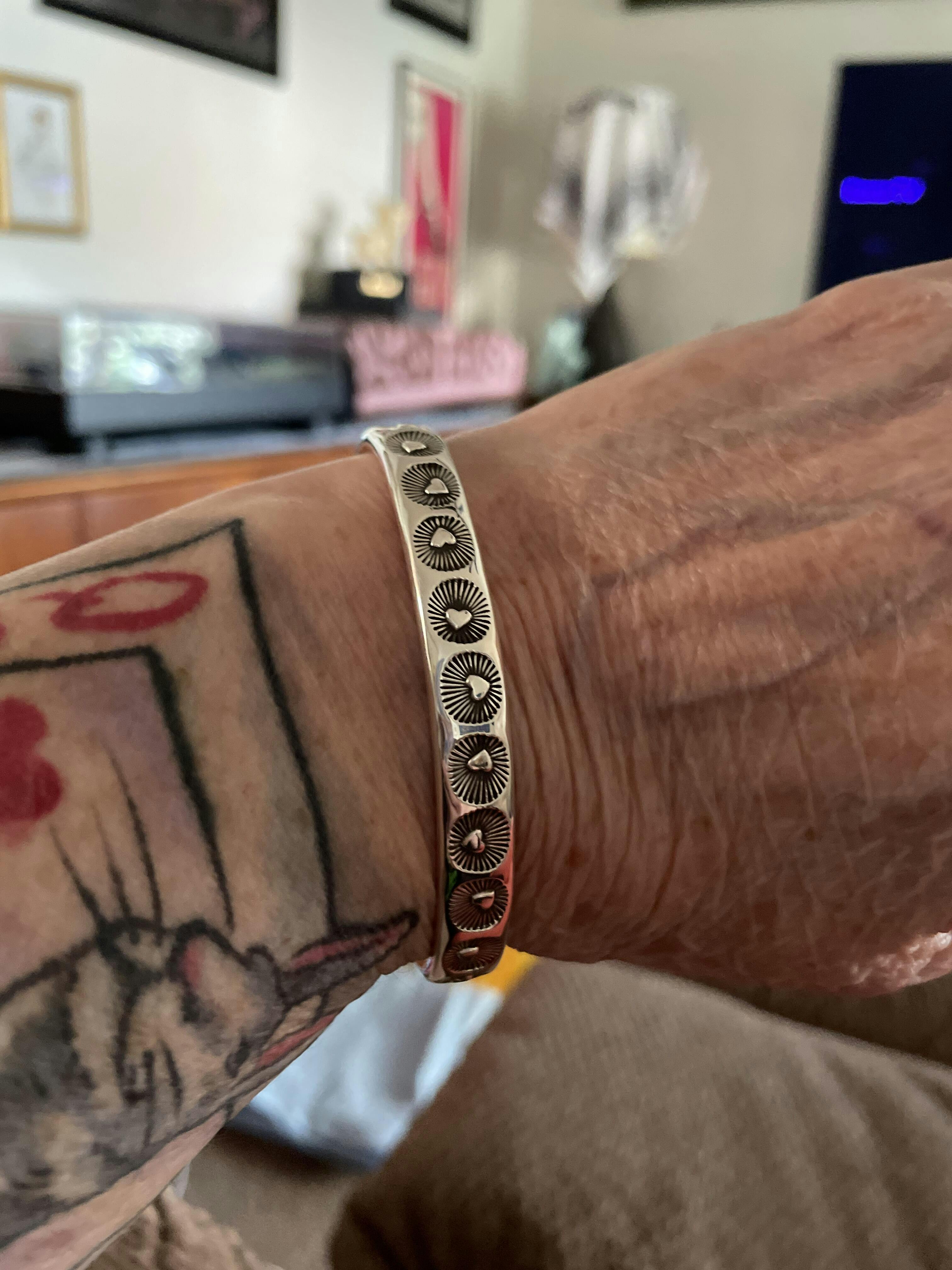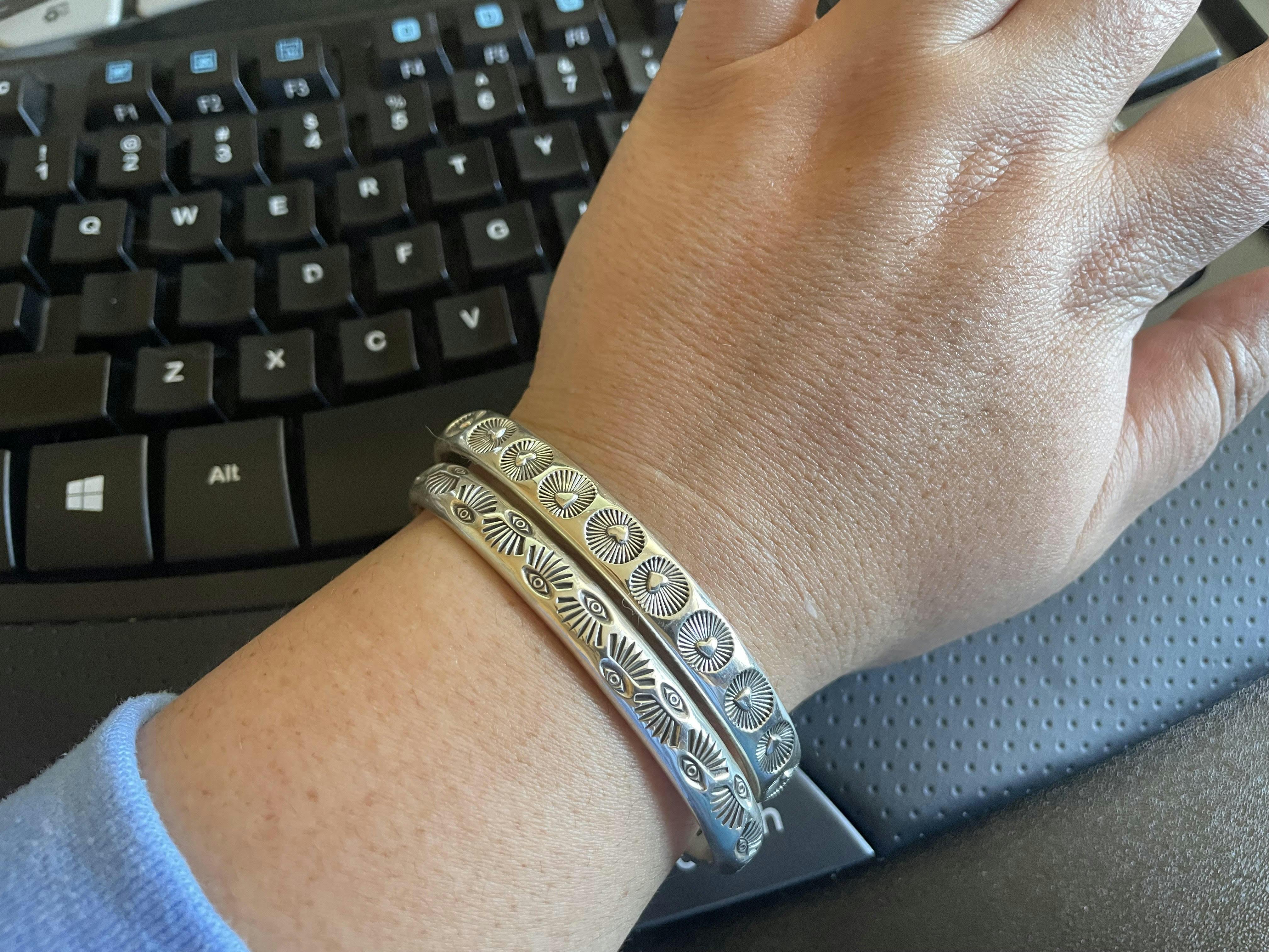This heart cuff is my absolute favorite to date. The stamps are perfectly placed and so cute. These cuffs fit beautifully on the wrist. I love the oval shape of them.